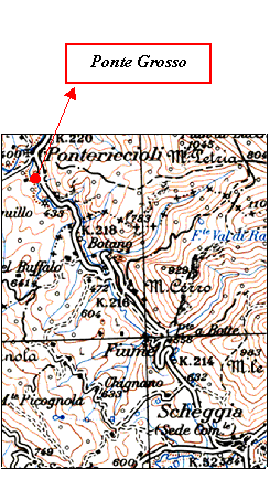 Ponte Grosso: lato monte, visibile verso la spalla destra un tratto di muro d’ala.