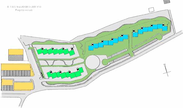 ![]() A est del nucleo originario del paese di Trasanni, oltre la zona PEEP già realizzata, si estende la nuova area di insediamenti su cui sorgerà il Villaggio dei giovani |