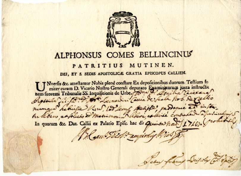 Bernardini Caccia de’ Scala nobile di Cagli, 5 novembre 1718